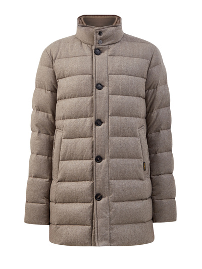 Стеганый пуховик от Hetrego сочетает плотную шерстяную ткань и съемный внутренний жилет из нейлона для дополнительной защиты от ветра. Наполнитель из пуха и пера обеспечивает комфорт в условиях низких температур. За счет универсальной длины изделие органично смотрится в том числе с блейзерами и пиджаками. Детали: шлица на спинке, двойная застежка на пуговицы и молнию, прорезные карманы.