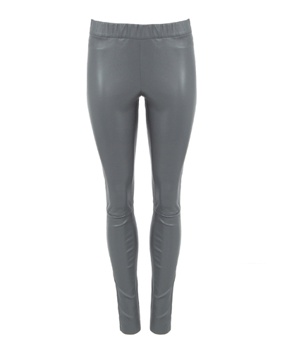 Брюки MAX&MOI из эластичной кожи серого оттенка. Модель облегающего силуэта с эластичной линией пояса и высокой посадкой на талии.