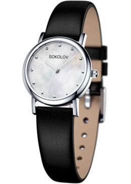 Кварцевые часы. Водостойкость WR 30. Центральные часовая, минутная и секундная стрелки. Перламутровый циферблат с часовыми индексами в виде точек. Корпус выполнен из нержавеющей стали. Диаметр корпуса 26 мм. Устойчивое к возникновению мелких механических повреждений минеральное стекло. Кожаный ремешок черного цвета. Ширина ремешка 12 - 14 мм. Застежка и заводная головка выполнены из нержавеющей стали.