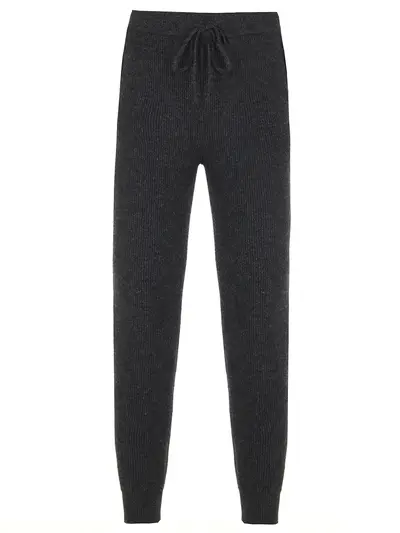 -Темно-серые трикотажные джоггеры из мягкого кашемира от MIR CASHMERE. -Модель облегающего силуэта с эластичным поясом на кулиске для выбора комфортной высоты посадки, прорезными карманами, манжетами в нижней части брючин.