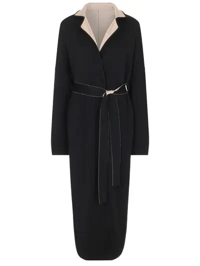 -Двусторонний кардиган из кашемира от FREE AGE. -Модель свободного силуэта со спущенной линией плеча, длинными рукавами, карманами по бокам, отложным воротником, акцентным поясом, который подчеркивает талию и структурирует силуэт.