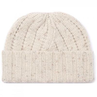 Бежевая шапка с отворотом подойдет в качестве базы для осенне-зимнего сезона. Модель выполнена из трикотажа, в составе которого 80% натуральной шерсти. Особый шарм шапке придает металлизированное волокно в составе. Шапка уместна как в образах с куртками, так и с дубленками и шубами.