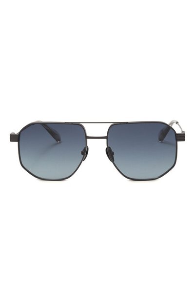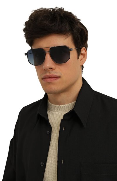 В исполнении команды бренда авиаторы обрели более геометричный силуэт. Плавных линий лишены и узкая оправа из нержавеющей стали с матовым черным покрытием, и крупные линзы с синим градиентом, которые не только блокируют ультрафиолетовые лучи, но и гасят блики.