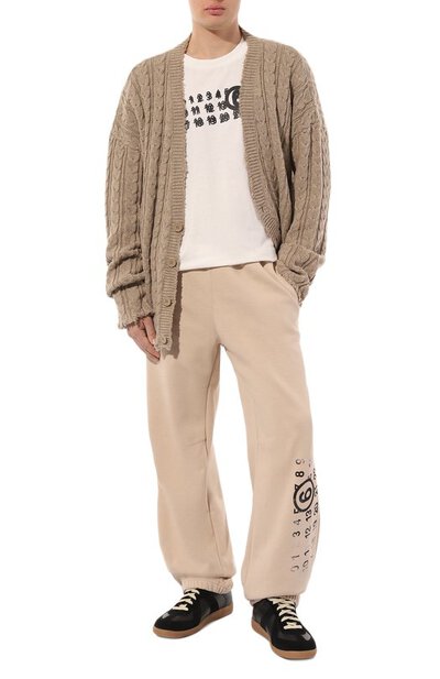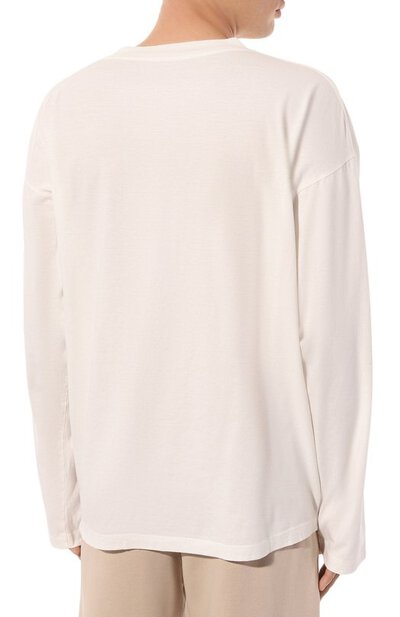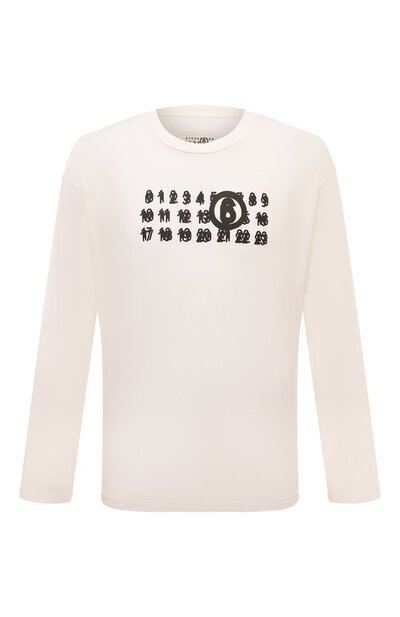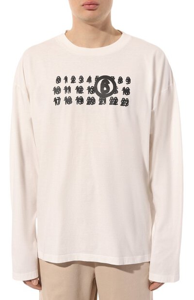 Кремовый лонгслив декорировали спереди крупным принтом в виде фирменного цифрового кода, отсылающим к концепции group of three, в соответствии с которой создаются многие вещи марки. Для пошива модели использовали мягкое хлопковое джерси. Тонкий легкий трикотаж приятно ощущается на теле и оптимально тянется, обеспечивая свободу движений и комфортную посадку по фигуре.