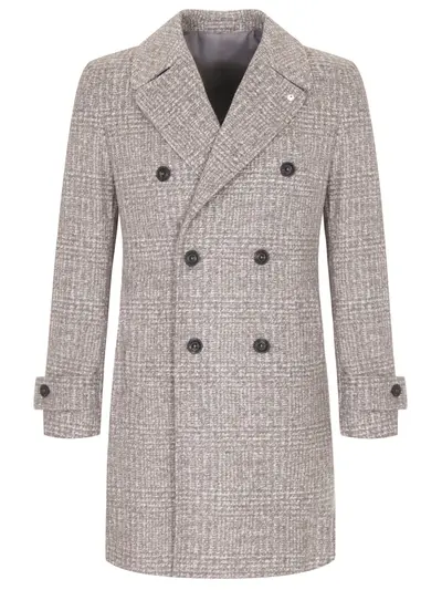 -Бежевое клетчатое пальто купажированного состава от L.B.M.1911.