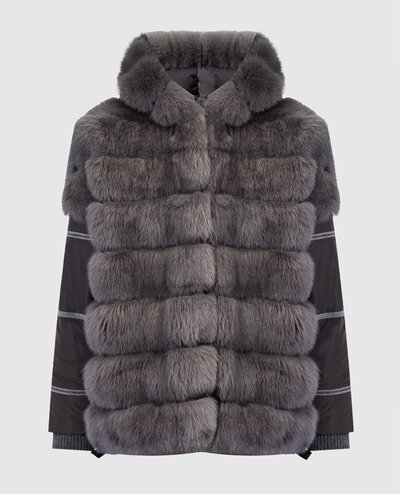 Серый пуховик с мехом соболя с цепочкой мониль (464145)