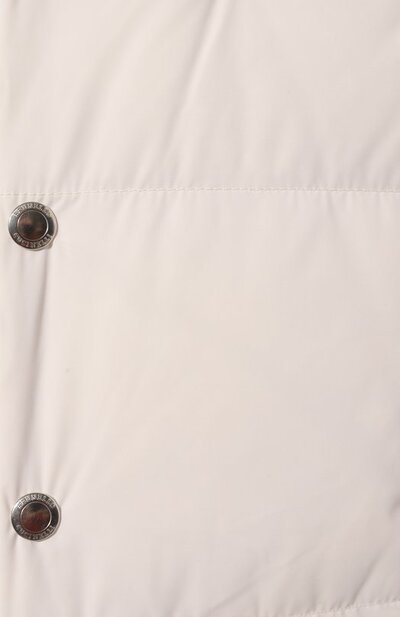 Стеганый жилет из мембранного нейлона стрейч утеплили гусиным пухом. Внутри — держатель для ручки и два кармана, а снаружи — три кармана. Модель со съемным регулируемым капюшоном застегивается кнопками.