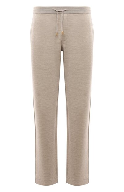 Для пошива прямых бежевых брюк мастера марки, основанной Стефано Риччи, использовали исключительно приятный на ощупь трикотаж. Пряжу произвели из нежнейшего кашемира и ультратонкой шерсти премиального качества, поэтому изделие поддерживает оптимальный микроклимат и во время прогулки в холодную погоду, и в теплом помещении. За удобную посадку на талии отвечает широкий пояс с регулируемой кулиской.