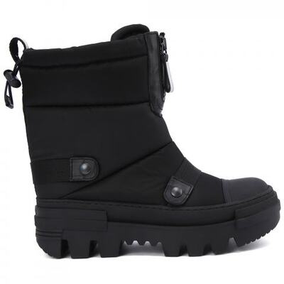 Высокие ботинки-дутики в чёрном цвете от Premiata. Пара из осенне-зимней коллекции бренда станет удачным решением как для города, так и для поездок на природу. Верх выполнен из плотной текстильной ткани, не пропускающей влагу и прекрасно сохраняющей тепло. Высокая подошва из резины дополнена объёмным протектором специально для прогулок по снегу и льду. Внутри текстильная подкладка и стелька из натурального меха. Снимать и надевать пару удобно за счет передней молнии, а кулиска на голенище поможет зафиксировать ботинки на ноге.