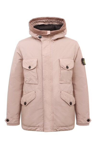 Для пошива куртки персикового оттенка использовали фирменный материал David-TS из японского нейлона. Изделие с четырьмя карманами и капюшоном обработали водоотталкивающей пропиткой, а затем подвергли воздействию высоких температуры и давления, благодаря чему модель приобрела приятную на ощупь бархатистую текстуру. На принадлежность бренду указывает знаковый съемный патч на рукаве.