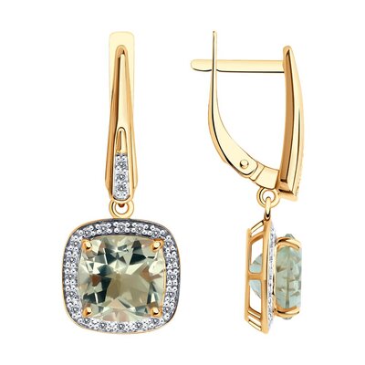 Серьги Sokolov из золота с бриллиантами и празиолитом 3253081362 (lpn24358197)