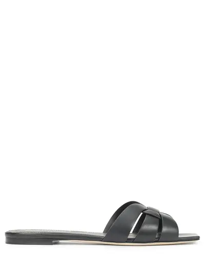 -Черные шлепанцы из мягкой кожи с матовым блеском от SAINT LAURENT.