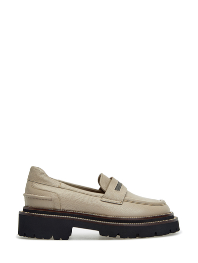 Женские лоферы от Peserico выполнены из мягкой крупнозернистой телячьей кожи. Модель в мужском стиле на массивной платформе станет эффектным дополнением повседневных образов. Изысканный штрих — выполненная вручную отделка из ювелирных цепочек Punto Luce, подчеркивающая фирменный стиль Модного Дома. Детали: противоскользящий протектор, контрастная прострочка. Сделано в Италии.