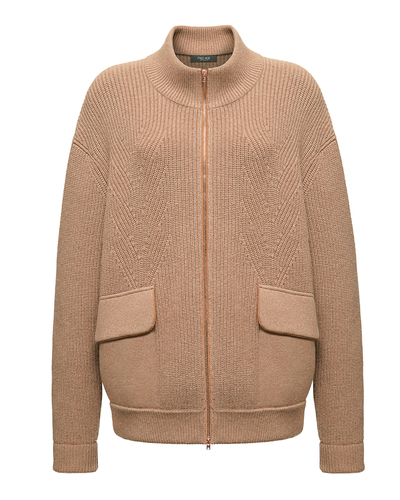 Кардиган Free Age из мягкой шерсти с добавлением кашемира. Модель прямого силуэта с застежкой на молнию дополнена двумя накладными карманами с планкой.