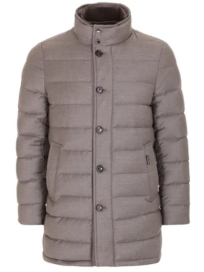 -Бежевый стеганый пуховик из шерсти от MOORER.