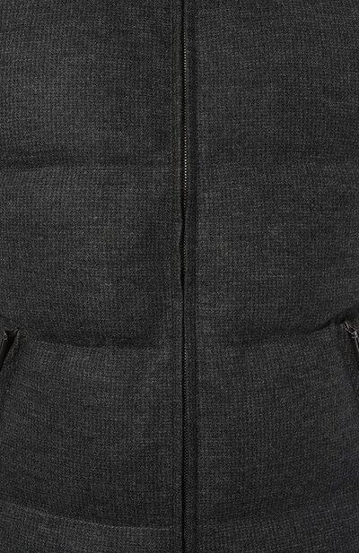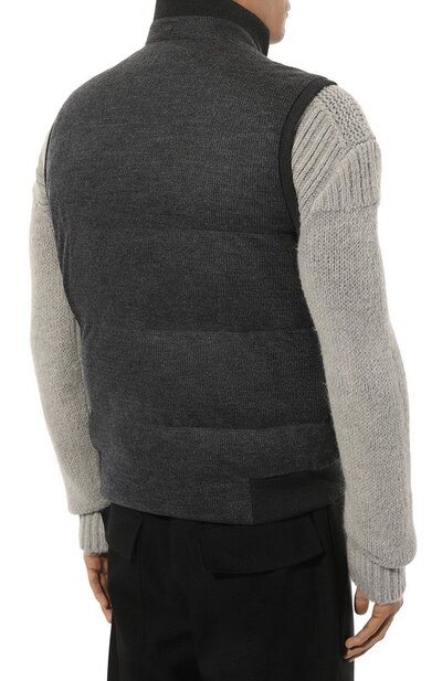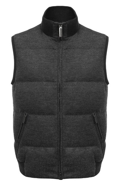 Мелкая темно-серая клетка пье-де-пуль создает впечатление, что этот стеганый жилет сшили из костюмной ткани. Под строгий текстиль мимикрирует более мягкий и эластичный трикотаж из отборной шерсти, который хорошо сохраняет тепло. Поладить с холодом помогает и легкий наполнитель, а высокий ребристый воротник-стойка закрывает шею не хуже шарфа. Трикотажный кант на проймах и боковые вставки на поясе не позволяют ветру проникнуть внутрь.