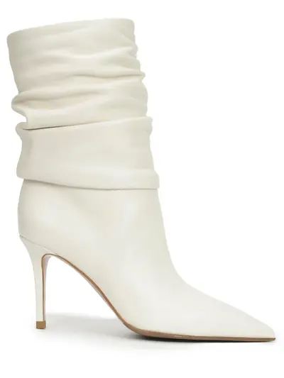 -Кремовые ботильоны из мягкой кожи от LE SILLA. -Модель с заостренным мысом, высоким голенищем с аккуратными драпировками, каблуком-шпилькой, внутренней отделкой из натуральной кожи.