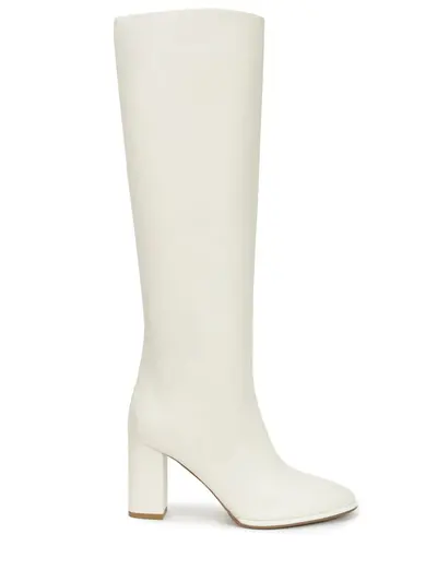 -Сапоги из мелкозернистой кожи молочного цвета от LE SILLA. -Модель с округлым мысом, свободным голенищем, устойчивым каблуком комфортной высоты, внутренней отделкой из натуральной кожи.