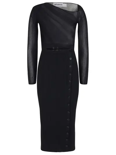 -Черное платье-миди из тонкого вискозного трикотажа от SELF-PORTRAIT.