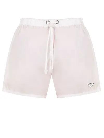 -Белые мини-шорты из переработанной ткани Re-Nylon от PRADA.