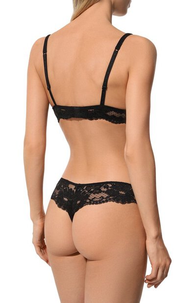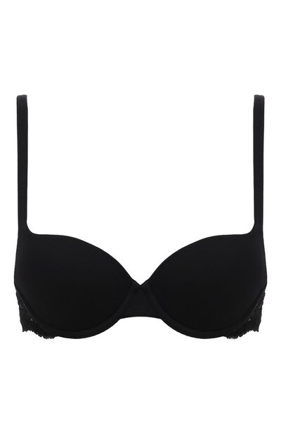 Этот черный бюстгальтер выглядит максимально лаконичным спереди, а выразительности ему добавляет пояс, выполненный из нежного ажурного кружева. Плотные чашечки, обтянутые приятным телу хлопковым джерси, гибкие косточки и регулируемые бретели обеспечивают комфортную поддержку груди.