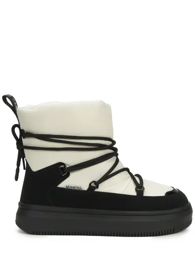-Модель с закругленным мысом, толстой резиновой подошвой, функциональной шнуровкой, логотипами на язычках, внутренней меховой отделкой на основе шерсти.