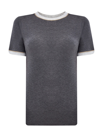 Eleventy Футболка из мягкого лиоцелла с мерцающей окантовкой ламе 242942 (серый, lpn24635722)