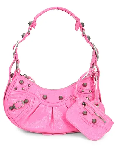 -Розовая сумка из натуральной кожи с эффектом кракелюра от BALENCIAGA.