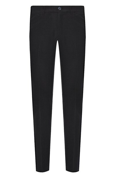 Темно-серые брюки в клетку сшили из мягкой ткани, сотканной из шелковистой тщательно очищенной от грубых волокон шерсти. Модель с отглаженными стрелками, создающая комфортный микроклимат, точно садится по фигуре, не ограничивая движения. Широкий пояс, удобно облегающий талию, дополнили эластичными вставками по бокам.