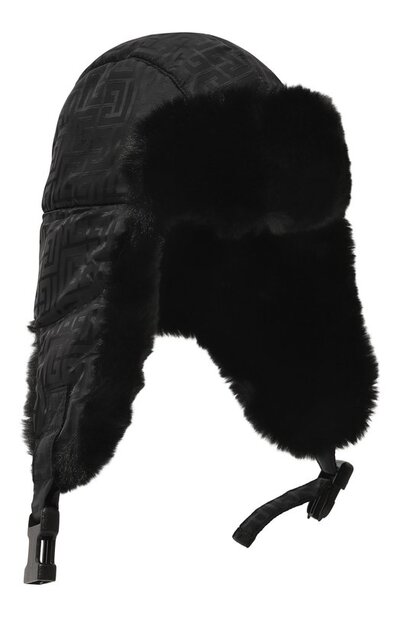 Шапку-ушанку с отделкой из напоминающего мех материала выполнили из нейлона с жаккардовым мотивом PB Labyrinth. Модель с брендированным патчем сзади застегивается регулируемыми ремешками с фастексом.