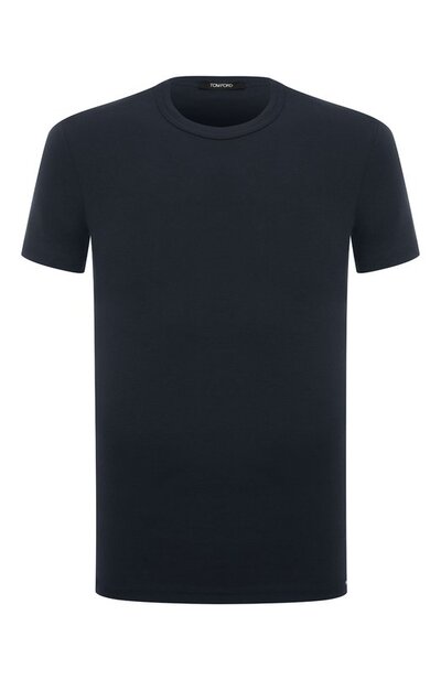 Темно-синяя однотонная футболка с круглой горловиной сшита из приятного на ощупь хлопкового джерси. Гладкий эластичный материал с шелковистой текстурой хорошо пропускает воздух и не пилингуется, а плоские швы не раздражают кожу. Легкая модель комфортного прямого кроя украшена небольшим патчем с логотипом марки.