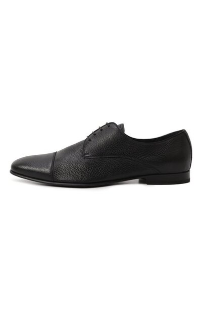 Дерби выполнили из крупнозернистой кожи оленя, отполированной до деликатного блеска. Материал, считающийся особенно мягким и эластичным, устойчив к появлению потертостей и царапин. Гибкая подошва почти не скользит.