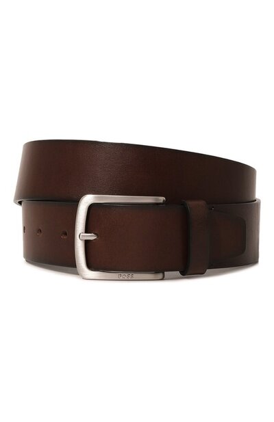 Для изготовления широкого темно-коричневого ремня использовали прочную итальянскую кожу. Готовый аксессуар отполировали, чтобы создать игру полутонов и благородную патину, которая со временем станет еще выразительнее. Модель застегивается брендированной пряжкой цвета античного серебра.
