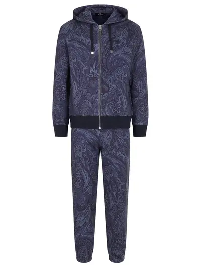 -Синий спортивный костюм из хлопка с принтом пейсли от ETRO.