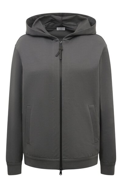 Оставив серую толстовку из линии Travelwear предельно лаконичной, в итальянском бренде сосредоточились на мягких линиях кроя и качестве текстиля. Модель выполнили из трикотажа на базе отборного хлопка премиальных сортов. В меру плотный материал не потеряет безупречную гладкость со временем, а на ощупь он максимально нежный.