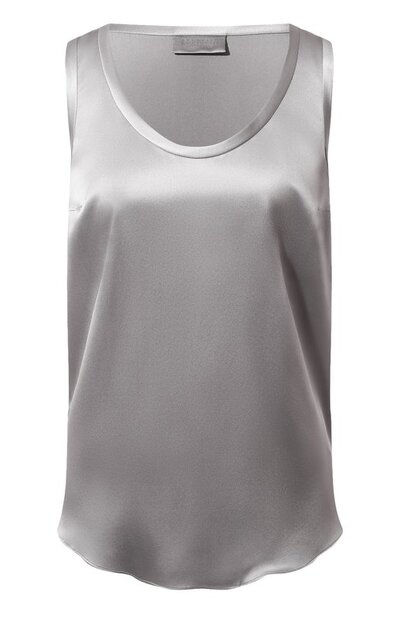 При изготовлении серого топа дизайнеры марки, основанной Брунелло Кучинелли, сделали ставку на эластичный атлас с характерным блеском. Модель почти ничего не весит, приятно ощущается на коже и долго сохраняет безупречный внешний вид. Наши стилисты предлагают создать повседневный образ с брюками и мюлями.