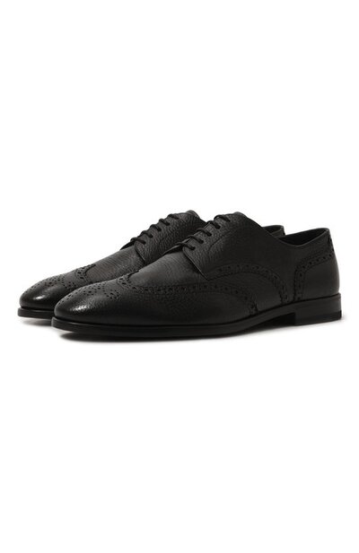 Градус формальности черных дерби с миндалевидным мысом снизили с помощью ажурного перфорированного узора, как будто позаимствованного у брогов. Для изготовления модели использовали прочную крупнозернистую кожу, тщательно выделанную вручную для придания пластичности. Пара на гибкой почти нескользящей подошве комфортно облегает стопу, адаптируясь с течением времени к ее форме.