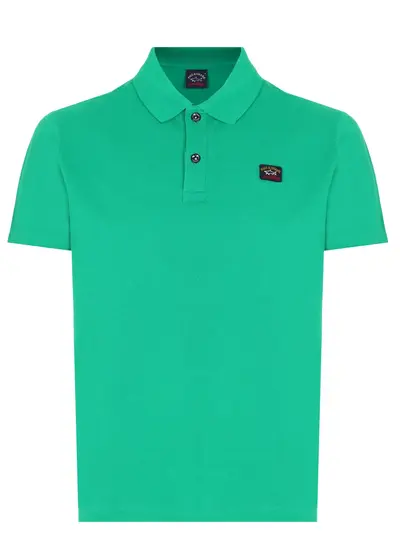 -Зеленое поло из хлопка-пике от PAUL&SHARK. -Модель полуприлегающего силуэта с короткими рукавами, отложным воротником, застежкой на пуговицы и нашивкой с логотипом бренда на груди.