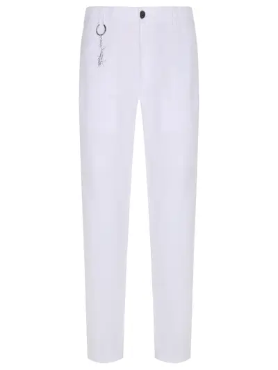 -Белые брюки из дышащего льна от PAUL&SHARK. -Модель прямого кроя со стандартной посадкой, частично эластичным поясом со шлевками, прорезными карманами, застежкой на молнию и пуговицу.