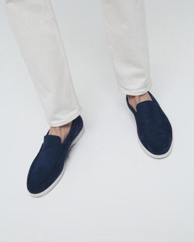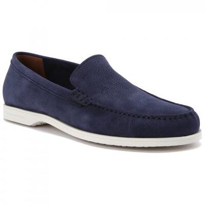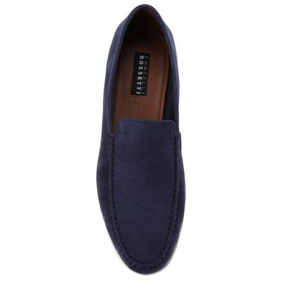 Мокасины с полукруглым мыском из натуральной замши от Fratelli Rossetti. Модель в непринужденном стиле и сдержанном синем цвете подойдет к любому образу. Легкая резиновая подошва, подкладка и стелька из натуральной кожи.