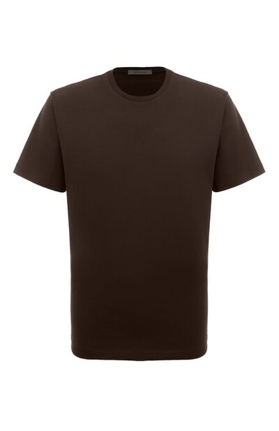 Коричневый оттенок адаптирует лаконичную футболку с чуть спущенной линией плеч для образов в разной цветовой гамме, а комфорт в течение дня обеспечивает материал. Нежное джерси изготовили из отборных волокон премиального хлопка, которые сформировали идеально ровную фактуру, не уступающую в гладкости шелку.