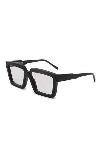 Черной оправе придали скульптурную форму, дополнив широкую рамку графичными заушниками с четкими линиями. Модель изготовили из легкого ацетата. Такой материал, отполированный до идеальной гладкости, считается одним из самых прочных, поэтому аксессуару не страшны случайные падения.