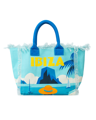 Пляжная сумка MC2 Saint Barth из текстильного материала с принтом логотипа бренда. Вместительное изделие с основным отделом и двумя удобными ручками. Отделка по краям в виде бахромы.