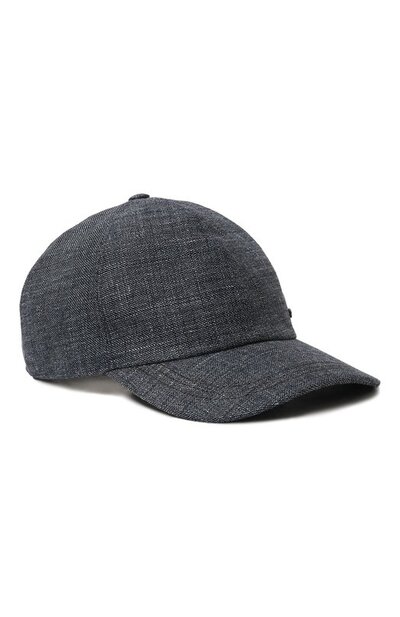 Сочетание разных оттенков синего создало на этой бейсболке меланжевый рисунок, подчеркивающий фактуру материала из смеси шерсти со льном. Над изогнутым козырьком аксессуара закрепили миниатюрную фирменную заклепку, а на коричневом кожаном ремешке велкро, регулирующем посадку, вытиснили логотип бренда.