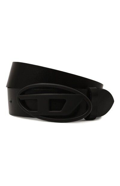 Ремень универсального черного цвета застегивается крупной кобурной пряжкой в виде эмблемы марки, которую окрасили в тон модели. Для изготовления аксессуара использовали матовую мелкозернистую кожу. Материал тщательно выделали, чтобы изделие получилось гибким.