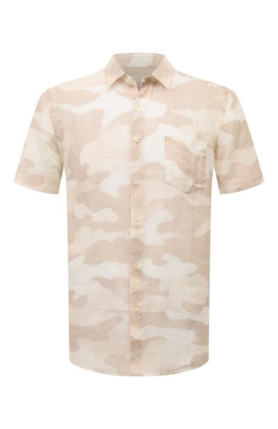 Бежевая рубашка с камуфляжным мотивом подружится с повседневным образом в любой цветовой гамме. Модель с короткими рукавами и накладным карманом спереди выполнили из мягкой льняной ткани, не препятствующей циркуляции воздуха. Изделие исключительно приятно ощущается на коже, а за счет выверенного кроя не ограничивает движения.