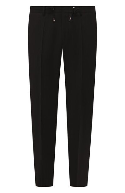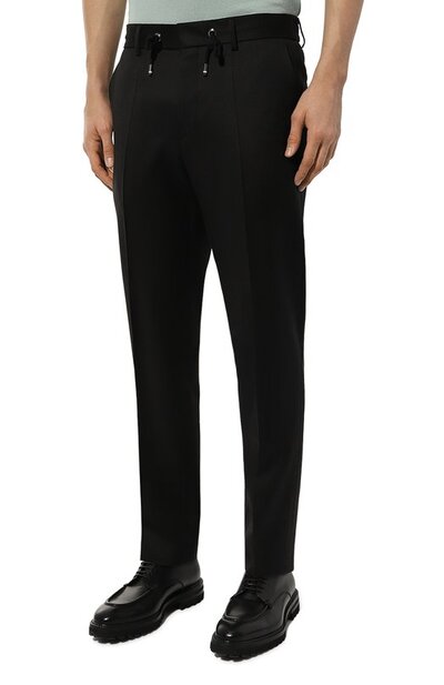 Прямые черные брюки со стрелками – универсальный вариант, который будет уместен и в офисе, и в менее формальной обстановке. Для пошива модели мастера марки, основанной Хуго Фердинандом Боссом, использовали тонкую немнущуюся саржу из отборной шерсти. Сырье для производства ткани закупили на фермах, где строго соблюдают принципы ответственного животноводства и земледелия. Чтобы сделать посадку на талии комфортнее, пояс дополнили эластичной вставкой и регулируемой кулиской.