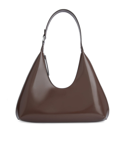 Изящные изогнутые линии характеризуют структурированный дизайн сумки Amber. Одна из фирменных моделей сумок через плечо BY FAR изготовлена из полулакированной кожи — материала, который характерен для коллекций бренда. Последние штрихи: застежка-молния, хлопковая подкладка и пряжка с выгравированным логотипом.