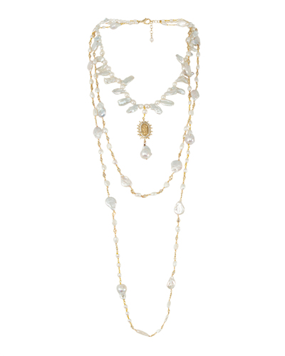 Колье Rocca Florentina выполнено из бижутерного металлического сплава с гальваническим гипоаллергенным покрытием. Украшение с натуральными камнями циркония и речного жемчуга.