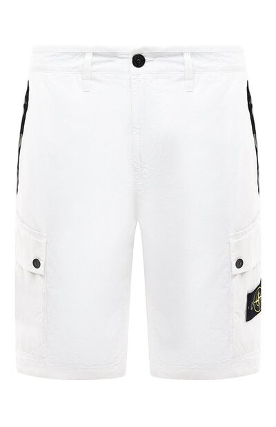 Белые шорты, окрашенные и выбеленные в готовом виде по фирменной технологии OLD, дополнили накладными карманами карго. Для пошива легкой модели использовали мягкую хлопковую парусину, не уступающую в гладкости шелку. Принадлежность изделия марке обозначили контрастной нашивкой со знаковой розой ветров.